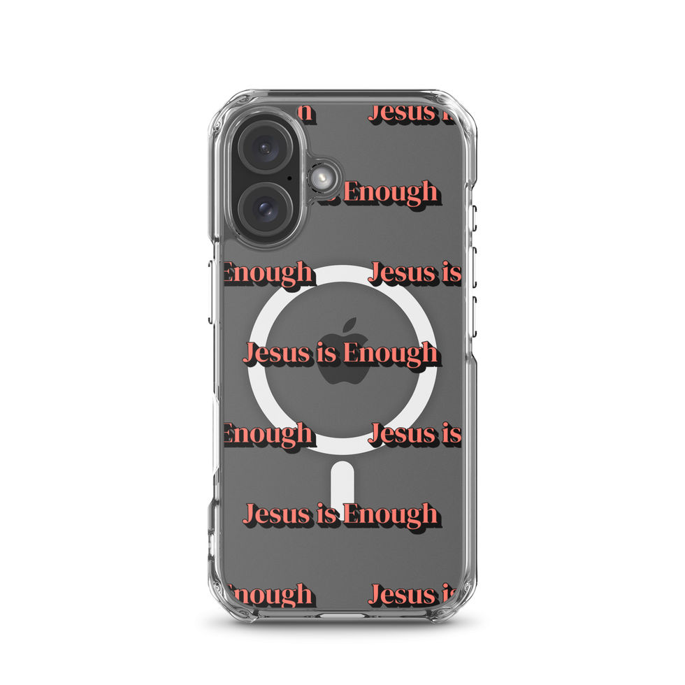 Keep your faith front and center while protecting your phone with this sleek and functional clear MagSafe® case. Designed for both style and performance, the hybrid material construction offers strong drop protection while showcasing your device. Built-in MagSafe® magnets ensure a secure connection for faster wireless charging and effortless accessory attachment.
